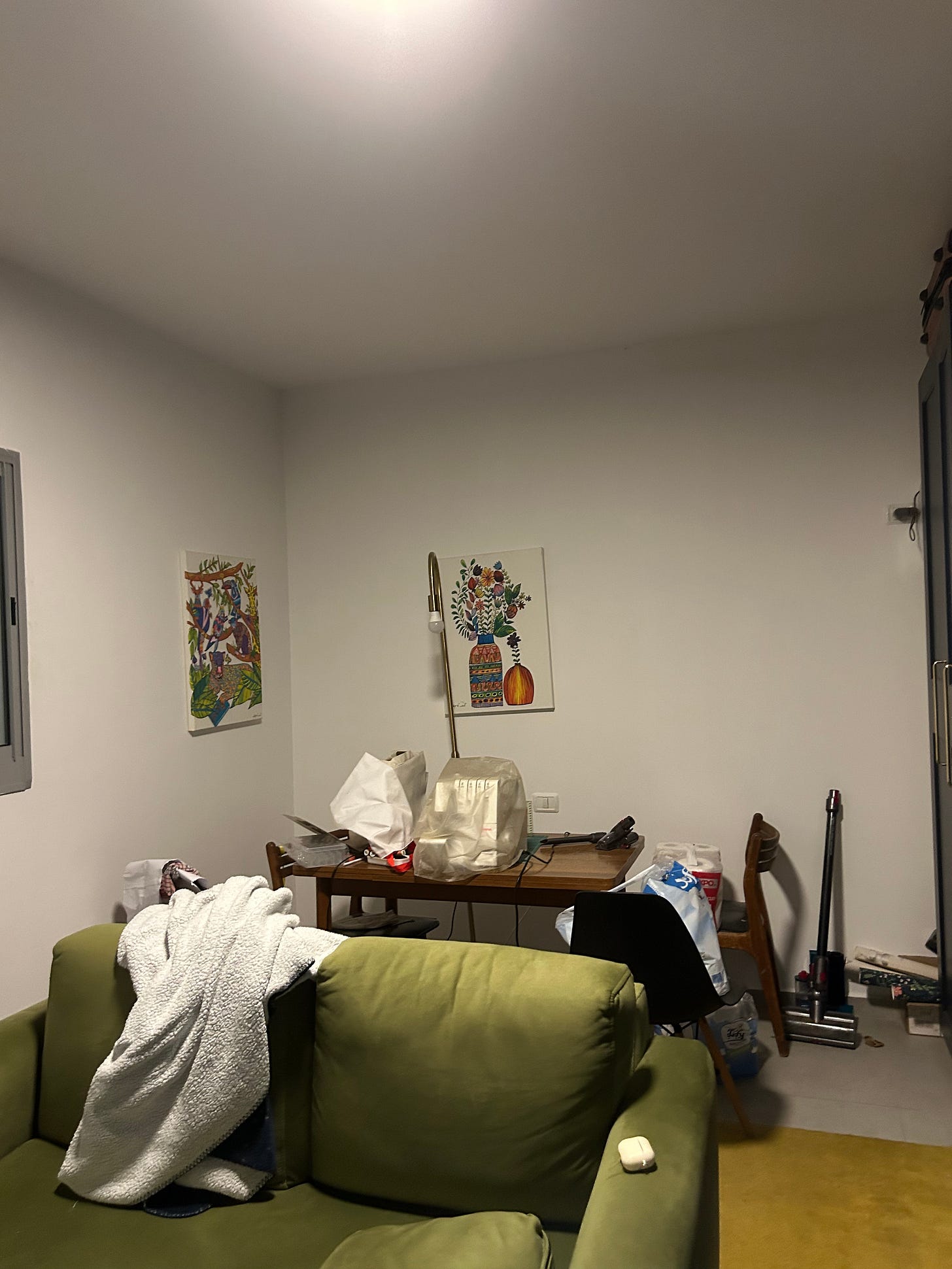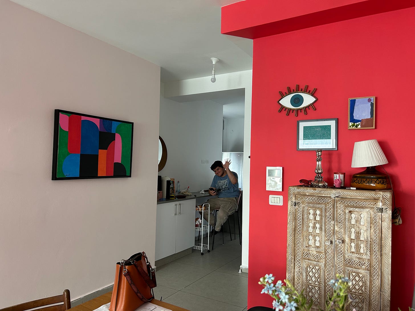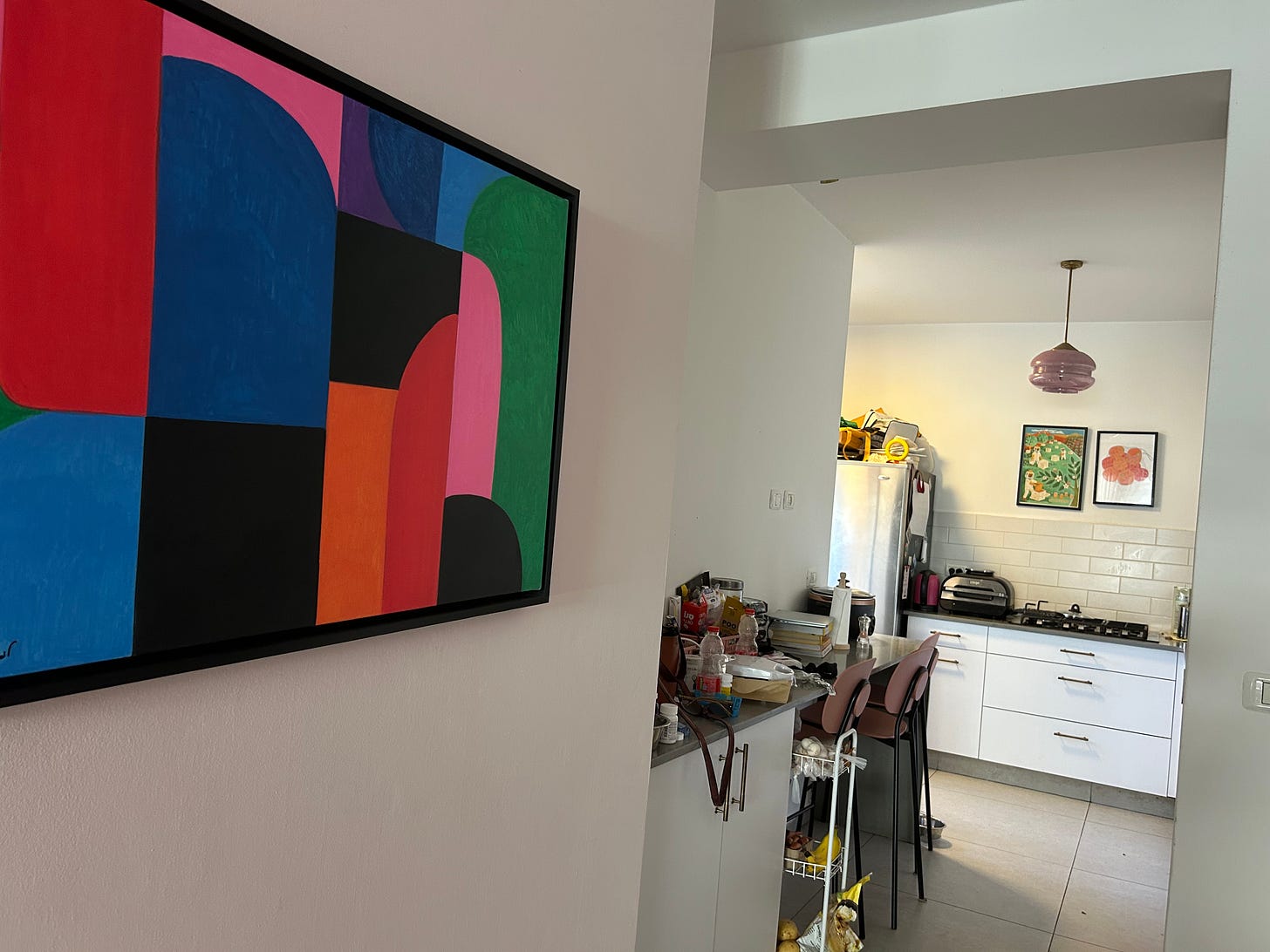 Just next to this wall and across the entrance, I have this huge geometrical painting by my friend Liat Levi Kopleman. Fun fact: Liat used to be my Editor in Chief and she was the first person to take a chance on me in the magazine world, back in 2010. She’s also an entrepreneur and an author (as well as an influencer.) (ps: That overhead lamo is long gone).